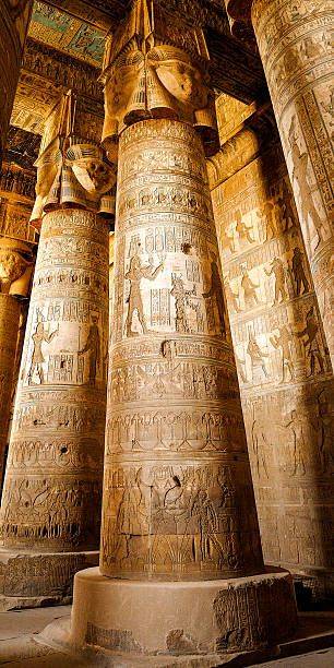 Der Tempel von Hathor wurde größtenteils während der späten Ptolemäerzeit errichtet, insbesondere während der Regierungszeit von Ptolemaios XII. Und Kleopatra VII. Später wurden Ergänzungen in der Römerzeit vorgenommen. Obwohl er von einer Dynastie von Herrschern errichtet wurde, die selbst keine Ureinwohner Ägyptens waren, wurde festgestellt, dass die Konstruktion dieses Tempels derjenigen anderer klassischer ägyptischer Tempel entsprach, mit Ausnahme der Vorderseite des Hypostylensaals, die laut einer Inschrift über dem Eingang wurde vom Kaiser Tiberius gebaut.